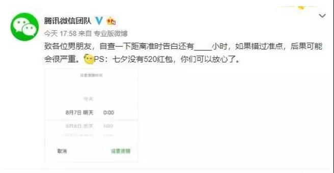 "七夕沒(méi)有520紅包,你們可以放心了"。