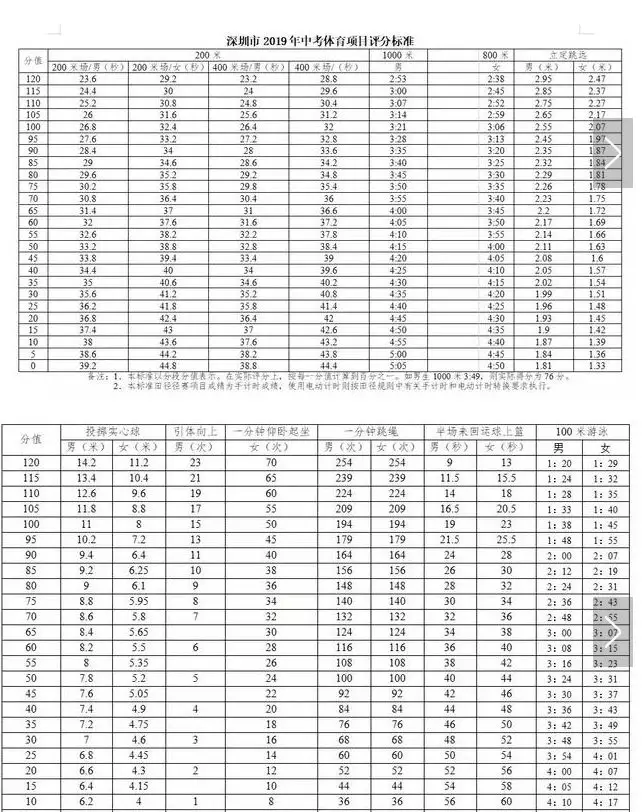 ▲深圳市2019年中考體育項(xiàng)目評(píng)分標(biāo)準(zhǔn)