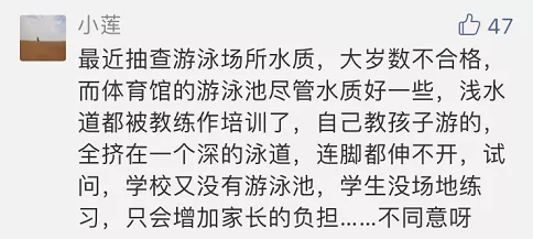 那么關(guān)于家長(zhǎng)們對(duì)于學(xué)校開游泳課的呼吁,