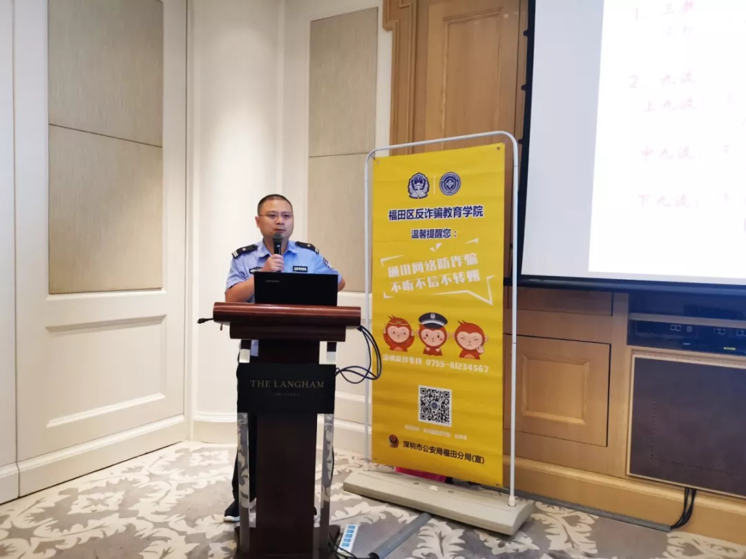 8月12日,福田區(qū)反詐騙教育學(xué)院系列第48場公開課走進(jìn)香蜜湖派出所轄區(qū)東海朗庭酒店,第37場宣傳活動走進(jìn)福田派出所轄區(qū)翰森大廈。(兩次活動覆蓋附近商戶及企業(yè)員工近300人。累計(jì)目前為止,共走進(jìn)6234家企業(yè)及商戶。)