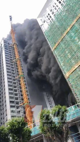 龍崗布吉一在建樓盤突發(fā)起火,躥起數(shù)十米高黑煙(圖)