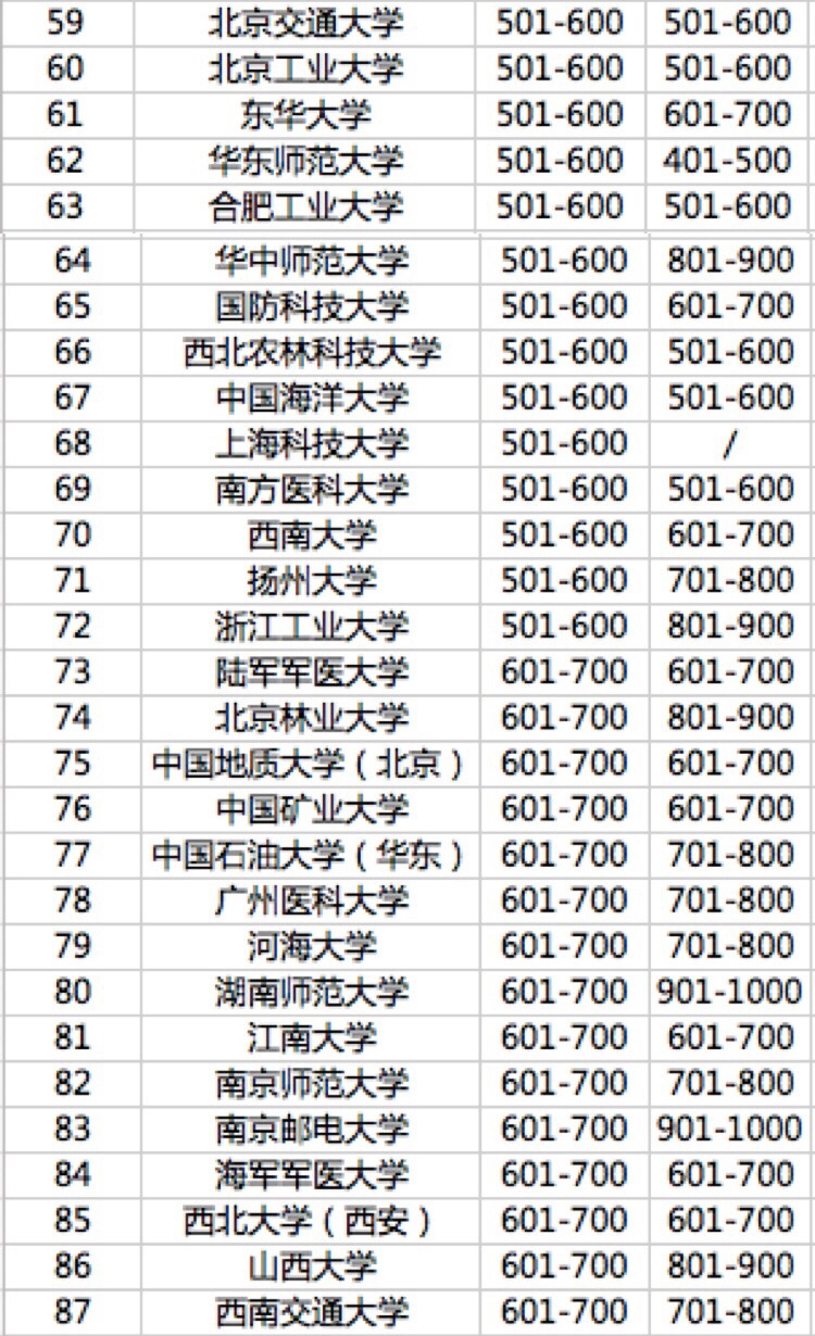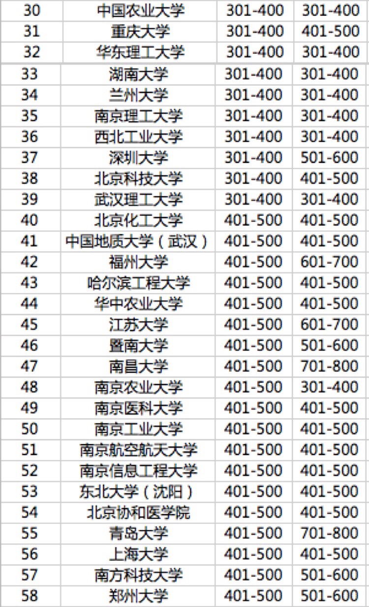 清華大學(xué)在中國(guó)內(nèi)地排名最高,位列全球第43名。上海交通大學(xué)的進(jìn)步尤其引人注目,今年首次躋身全球百?gòu)?qiáng),位列全球第82位,上海交通大學(xué)也成為繼清華大學(xué)、北京大學(xué)和浙江大學(xué)之后進(jìn)入全球百?gòu)?qiáng)的第四所中國(guó)大學(xué)。復(fù)旦大學(xué)、華中科技大學(xué)、中山大學(xué)和中國(guó)科學(xué)技術(shù)大學(xué)排在全球101-150名。中南大學(xué)、蘇州大學(xué)、東南大學(xué)、電子科技大學(xué)和武漢大學(xué)首次進(jìn)入世界200強(qiáng)。南開(kāi)大學(xué)、山東大學(xué)、同濟(jì)大學(xué)首次進(jìn)入世界300強(qiáng)。深圳大學(xué)、南方科技大學(xué)、青島大學(xué)、福州大學(xué)、鄭州大學(xué)、南昌大學(xué)、江蘇大學(xué)、暨南大學(xué)今年首次入圍全球500強(qiáng)。上??萍即髮W(xué)、廣東工業(yè)大學(xué)等13所大學(xué)首次進(jìn)入全球1000強(qiáng)。