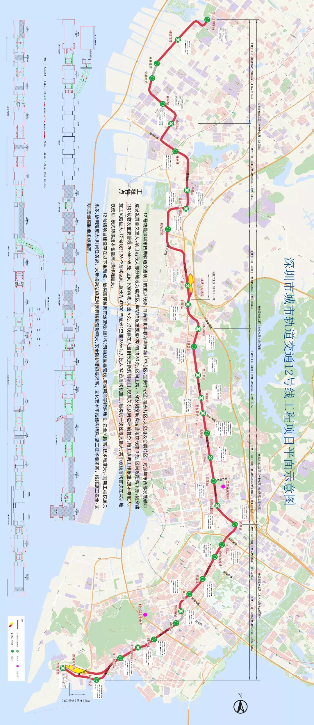 地鐵12號線起自南山區(qū)左炮臺站自南向北穿越南山中心區(qū)、寶安中心區(qū)、福永、大空港等片區(qū)后終至寶安區(qū)海上田園東站,線路全長40.56km,是進一步支撐深圳西部發(fā)展,提升前海蛇口自貿(mào)區(qū),空港新城發(fā)展品質的交通骨干線。