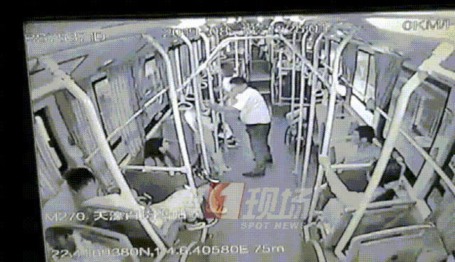 公交車司機(jī)見狀立刻大聲呵斥讓他停止