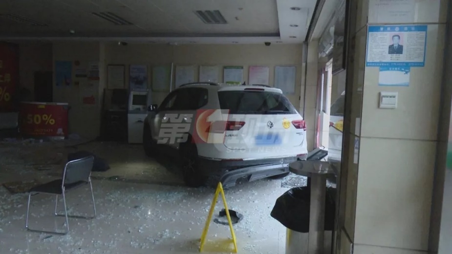 有人把車直接開進(jìn)了銀行大廳……