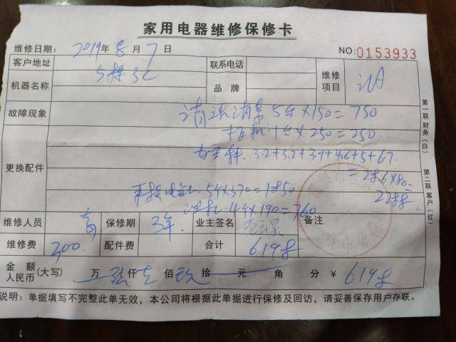 藍(lán)先生的妹妹在58同城小助手,找到了深圳市易臣國際貨運代理有限公司,并預(yù)約了上門清洗空調(diào)的服務(wù)。當(dāng)師傅上門以后,除了清洗外,還說空調(diào)存在多個問題,如需要加雪種(學(xué)名“氟利昂”)、線路老化、空調(diào)漏水等,6臺空調(diào)整體清洗加修理下來,藍(lán)小姐當(dāng)天共花費6618元。