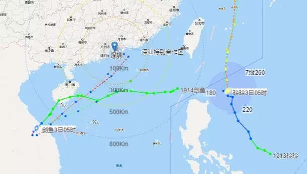 見圳客戶端.深圳新聞網(wǎng)2019年9月3日訊 9月2日,今年第13號臺風“玲玲”(強熱帶風暴級)生成,將向臺灣以東洋面靠近。今日2時,記者從深圳市氣象臺獲悉,另一個南海低壓也已加強為今年第14號臺風“劍魚”(熱帶風暴級),5時其中心位于深圳市西南方大約1000公里,中心附近最大風力8級(64公里/小時),中心最低氣壓995百帕。今明兩天其將在越南中部沿海一帶徘徊打轉,之后可能轉向東北方向移動并靠近廣東沿海。