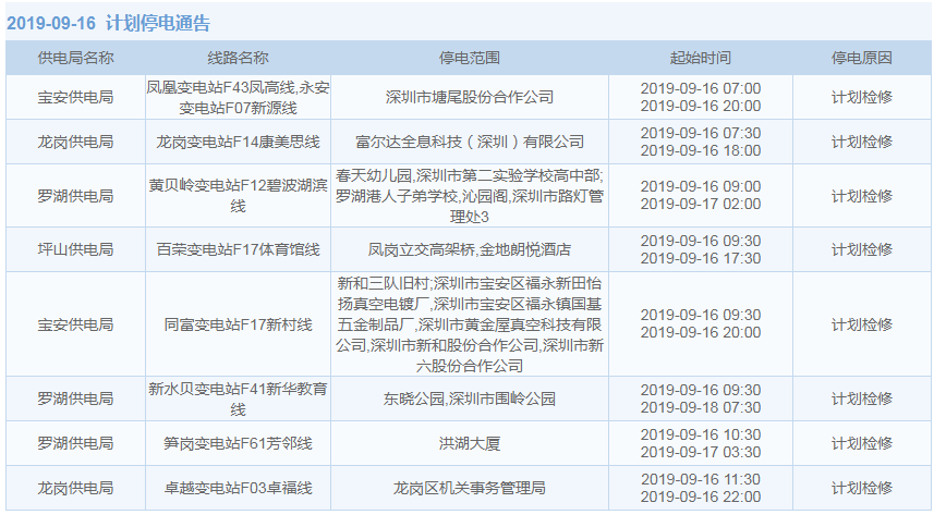 據(jù)中國(guó)南方電網(wǎng)最新消息,9月13日起至9月20日,深圳這部分地區(qū)要停電了!此前,晶報(bào)APP還報(bào)道了8月27日至9月12日深圳停電的情況:(8月27日至9月12日,深圳這些地方停電!快看影響你家沒(méi)),快來(lái)看看有沒(méi)有你家的吧。