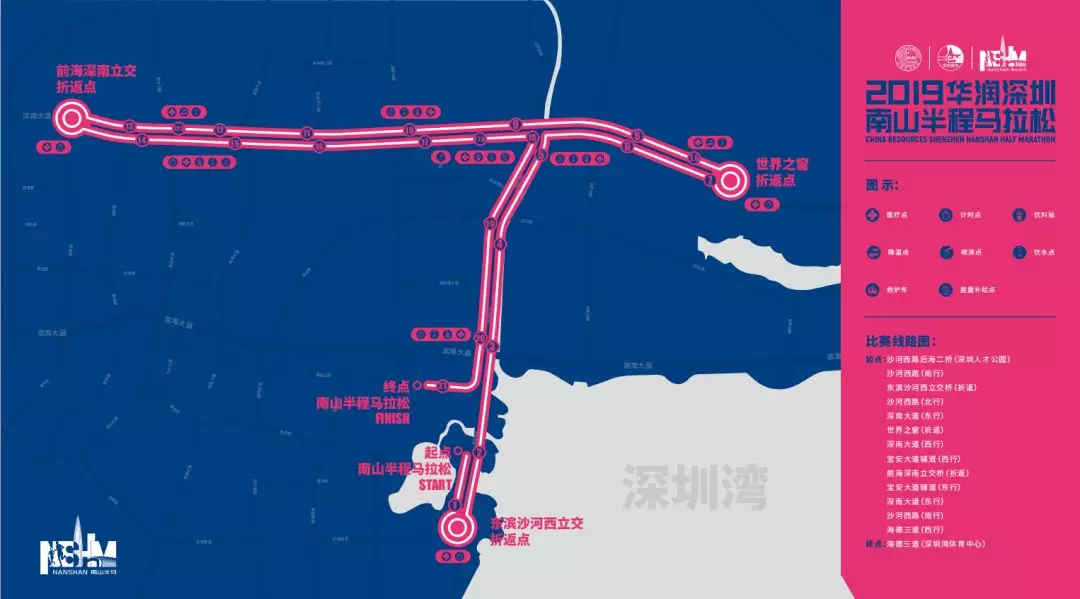 值得一提的是,今年南馬的路線較去年略有調(diào)整,賽事線路整體呈T字形,賽道起點(diǎn)在沙河西路后海二橋(深圳人才公園東門),賽道終點(diǎn)在海德三道(深圳灣體育中心),賽道主體由沙河西路和深南大道組成一縱一橫,途徑深圳灣總部經(jīng)濟(jì)片區(qū)、高新技術(shù)園、大沙河生態(tài)長(zhǎng)廊、世界之窗、南頭古城等多個(gè)地標(biāo)性建筑,不僅彌補(bǔ)了往年沒(méi)有經(jīng)過(guò)深圳灣海域的遺憾,讓選手在賽跑之余一覽灣區(qū)海景,更向選手與觀眾充分展示南山自然人文科技之美。