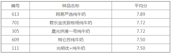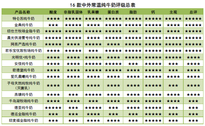 最終,經(jīng)綜合評價(jià),此次中外常溫純牛奶比較試驗(yàn)中,共6款常溫純牛奶獲五星評價(jià),五款國產(chǎn):蒙牛特侖蘇、伊利金典、君樂寶優(yōu)質(zhì)牧場、晨光供港壹號和網(wǎng)易嚴(yán)選純牛奶;一款進(jìn)口:紐仕蘭牧場全脂牛奶。