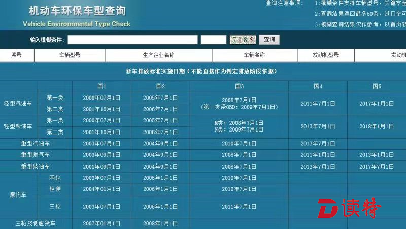 此外,2017年1月1日前生產(chǎn)的或進(jìn)口的機(jī)動(dòng)車可通過登錄機(jī)動(dòng)車環(huán)保網(wǎng)網(wǎng)站自助查詢排放標(biāo)準(zhǔn)信息。2017年1月1日后生產(chǎn)的或進(jìn)口的機(jī)動(dòng)車以該車的《環(huán)保信息隨車清單》為準(zhǔn),清單上已備注該車的排放標(biāo)準(zhǔn),同時(shí)清單上也有二維碼,通過掃描二維碼的結(jié)果可判斷該清單內(nèi)容是否屬實(shí);如無《環(huán)保信息隨車清單》,可通過機(jī)動(dòng)車環(huán)保信息公開平臺查詢(http://219.141.229.209/ve/vin/index)。