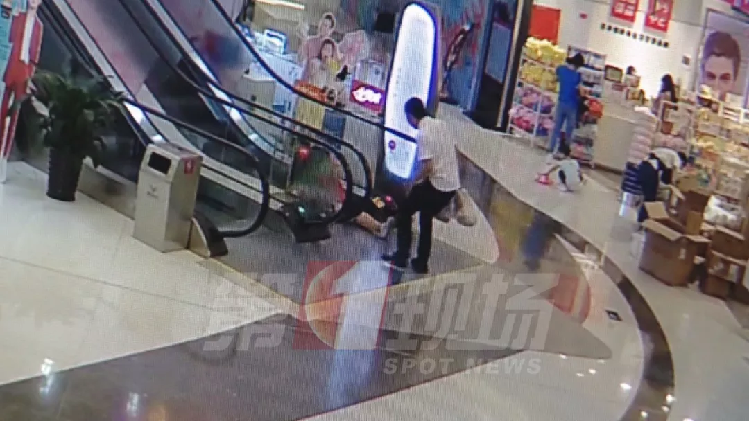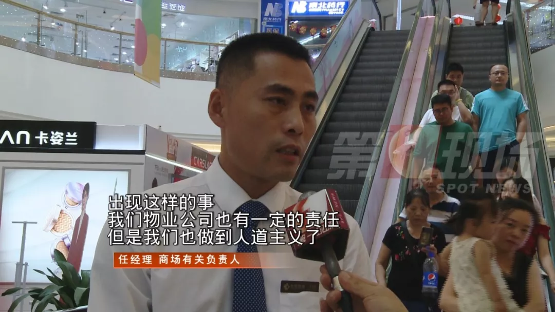 但商場(chǎng)負(fù)責(zé)人介紹,監(jiān)控顯示:事故發(fā)生大約10秒鐘左右,保安就及時(shí)趕到了現(xiàn)場(chǎng)。