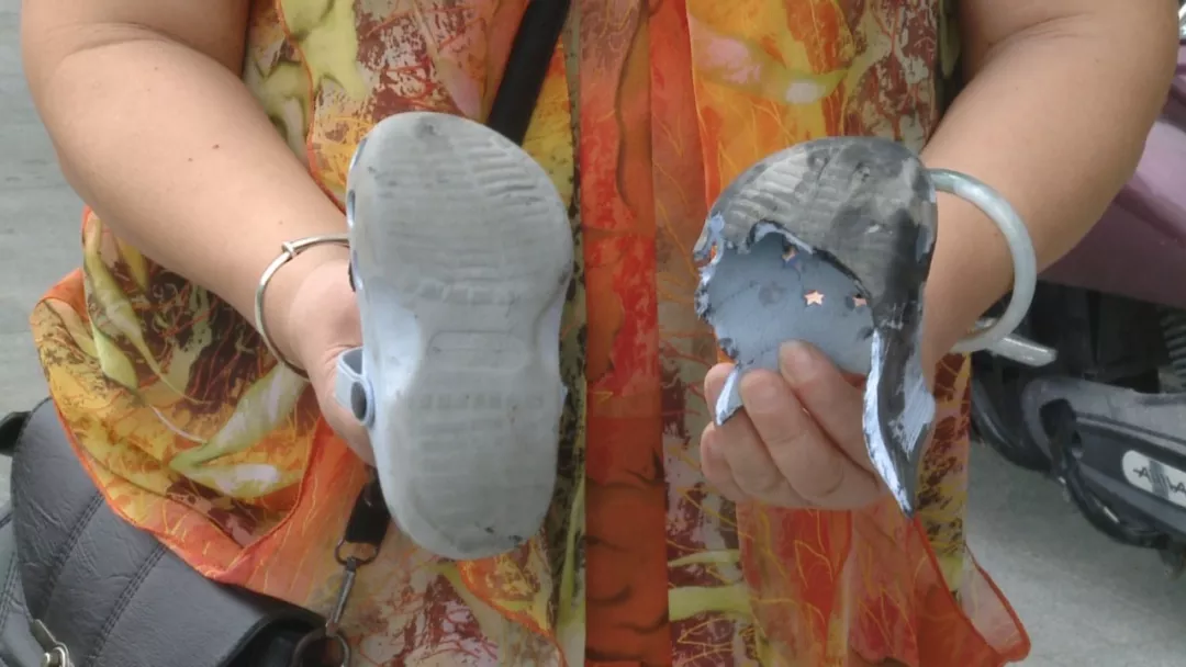 而除了洞洞鞋之外,我們欄目也曾報(bào)道過(guò)穿拖鞋乘梯造成的類似危險(xiǎn)情況。