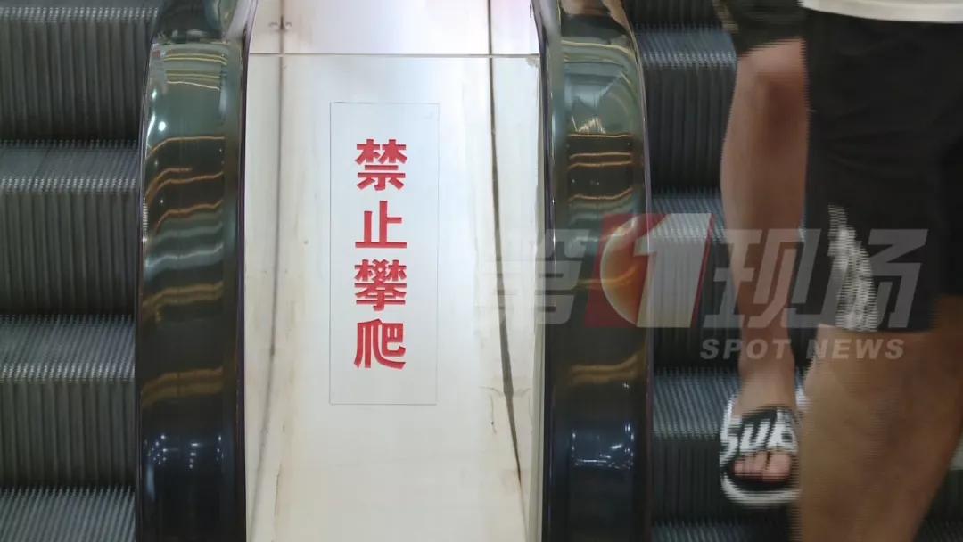 記者看到,這家商場(chǎng)已經(jīng)在手扶電梯處,設(shè)置了一些“禁止攀爬”,“小孩必須拉住”的安全警示標(biāo)志。
