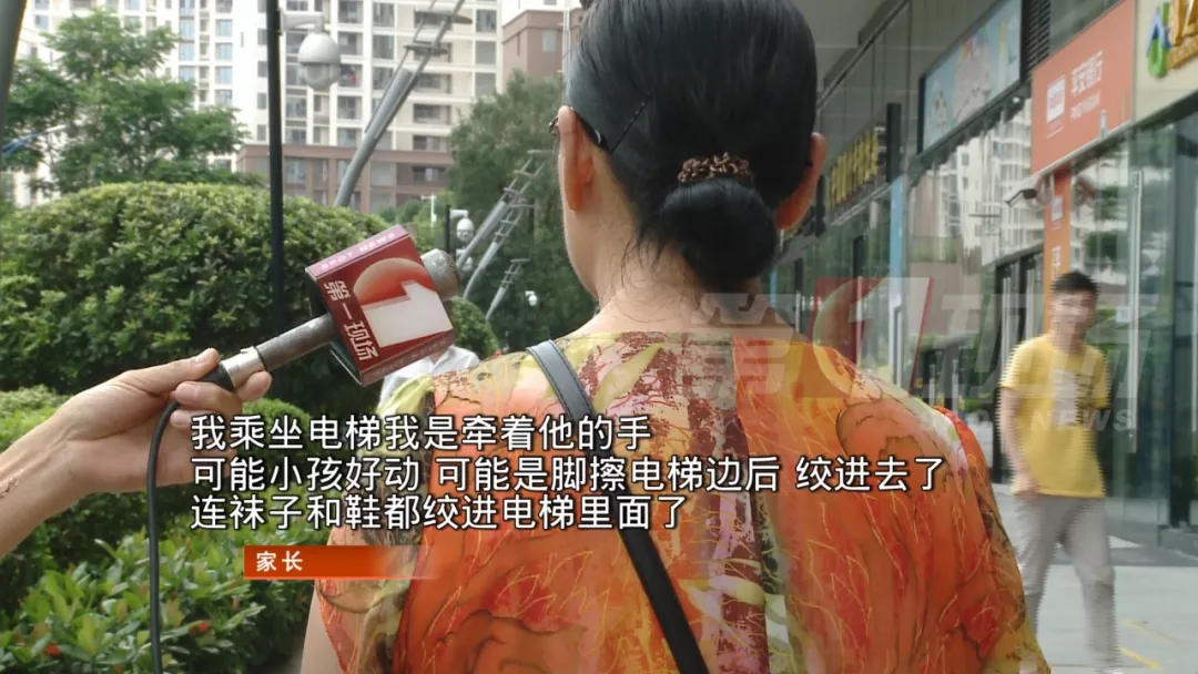一位過(guò)路的市民見(jiàn)狀,按下了電梯緊急停止鍵,李女士這才慢慢幫助兒子脫困。孩子的洞洞鞋,前半截在電梯空隙里被絞斷,只剩下后半截,萬(wàn)幸的是,小孩沒(méi)有受傷。