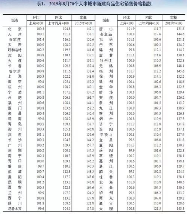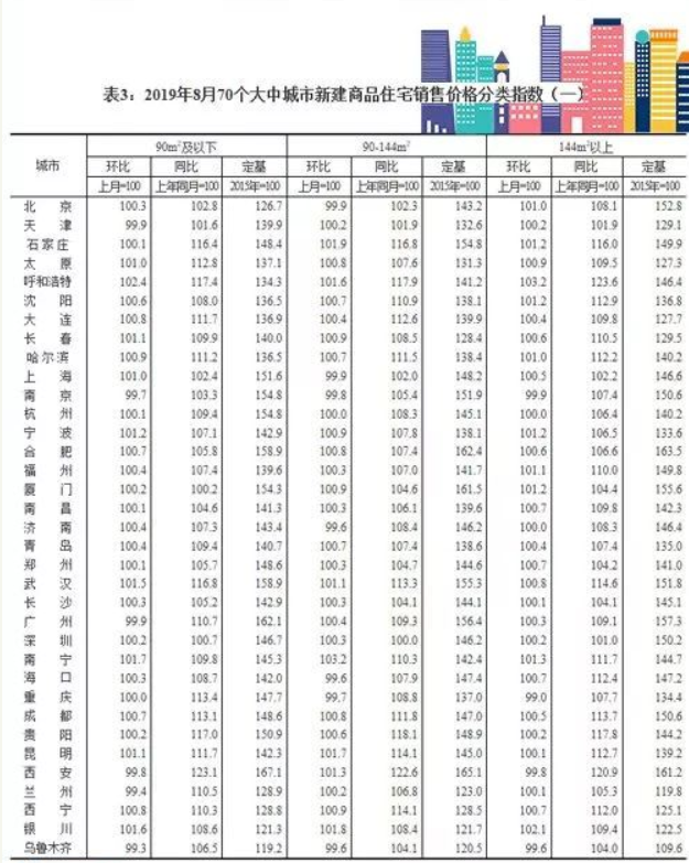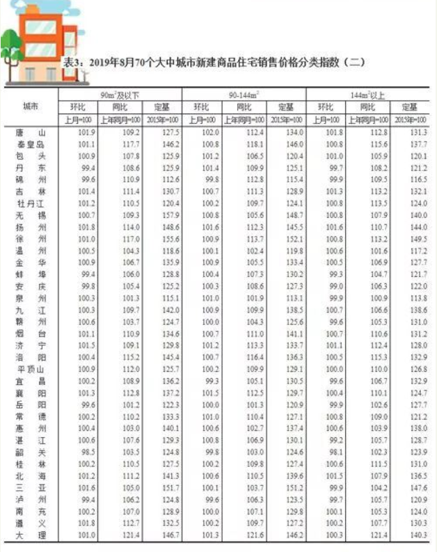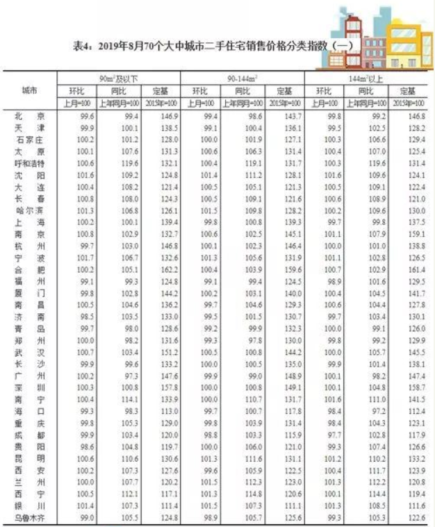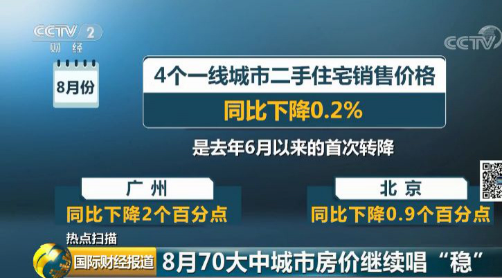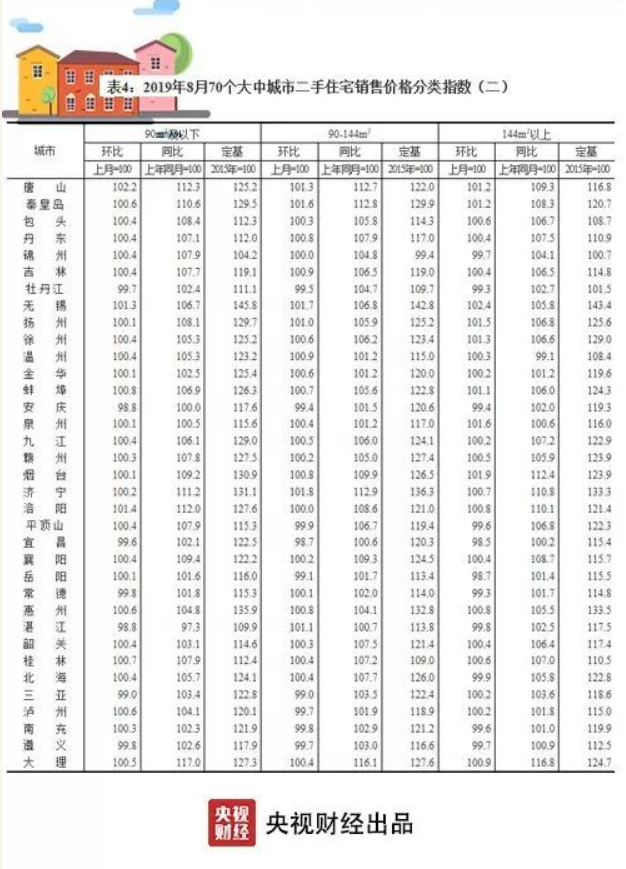 央視財(cái)經(jīng)2019年9月18日訊 近日,國家統(tǒng)計(jì)局發(fā)布了8月份70個(gè)大中城市商品住宅銷售價(jià)格變動(dòng)情況:一二線城市新建商品住宅和二手住宅銷售價(jià)格環(huán)比、同比漲幅均與上月相同或回落;三線城市新建商品住宅銷售價(jià)格環(huán)比漲幅與上月相同,二手住宅漲幅微升。