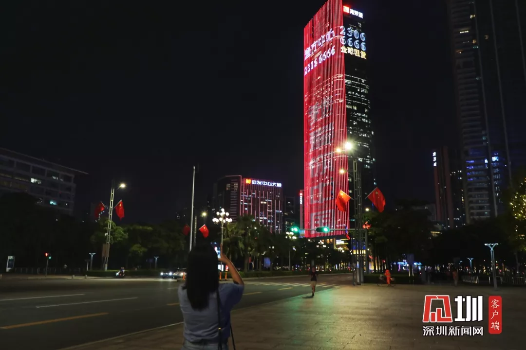 【寶安區(qū)】謝女士有一段時間沒來海濱廣場散步了,今晚她驚喜地發(fā)現(xiàn)這塊紅色“我愛你中國”燈光秀,連忙拿起手機(jī)記錄下這一刻。