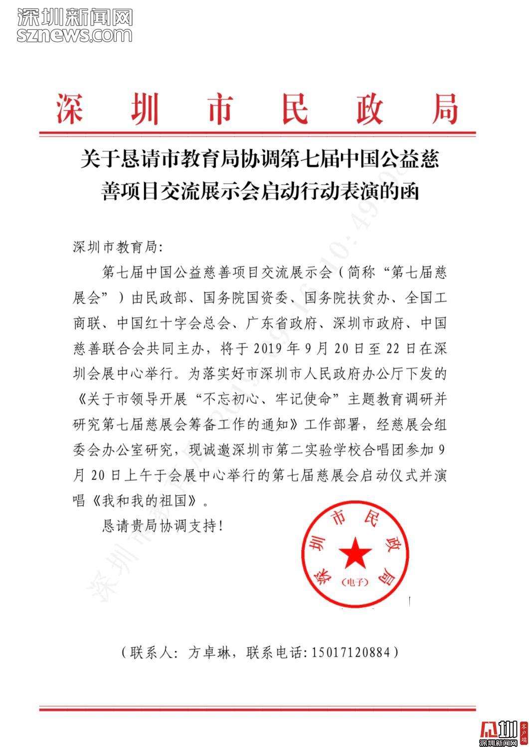 中國慈展會是國內(nèi)唯一的國家級、綜合性、國際化的慈善行業(yè)盛會!由民政部、國務(wù)院國資委、國務(wù)院扶貧辦、全國工商聯(lián)、中國紅十字會總會、廣東省政府、深圳市政府、中國慈善聯(lián)合會等共同主辦。組委會通過深圳市教育局向二實下發(fā)了開幕助演的邀請函。學(xué)校相關(guān)負責人介紹,二實第一次參加如此高規(guī)格的演出,藝術(shù)中心高度重視此次演出任務(wù),作好全面的溝通和協(xié)調(diào)協(xié)助,合唱團師生連日高強度排列,盡善盡美,全力以赴。