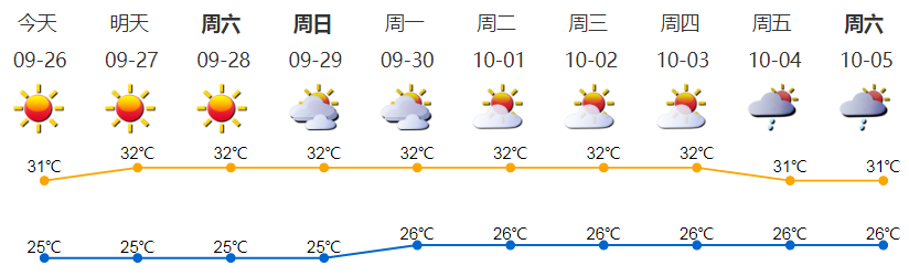 晴天干燥;氣溫25-31℃;東北風(fēng)2-3級;相對濕度40%-80%。