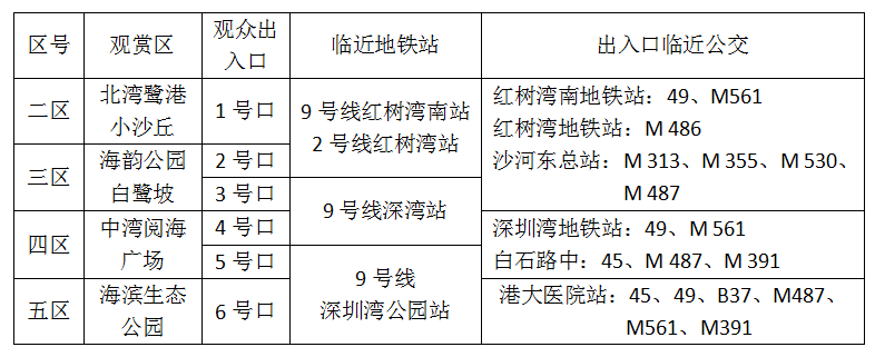 3.觀賞區(qū)域。深圳灣公園南側設二、三、四、五觀賞區(qū),具體區(qū)域見示意圖: