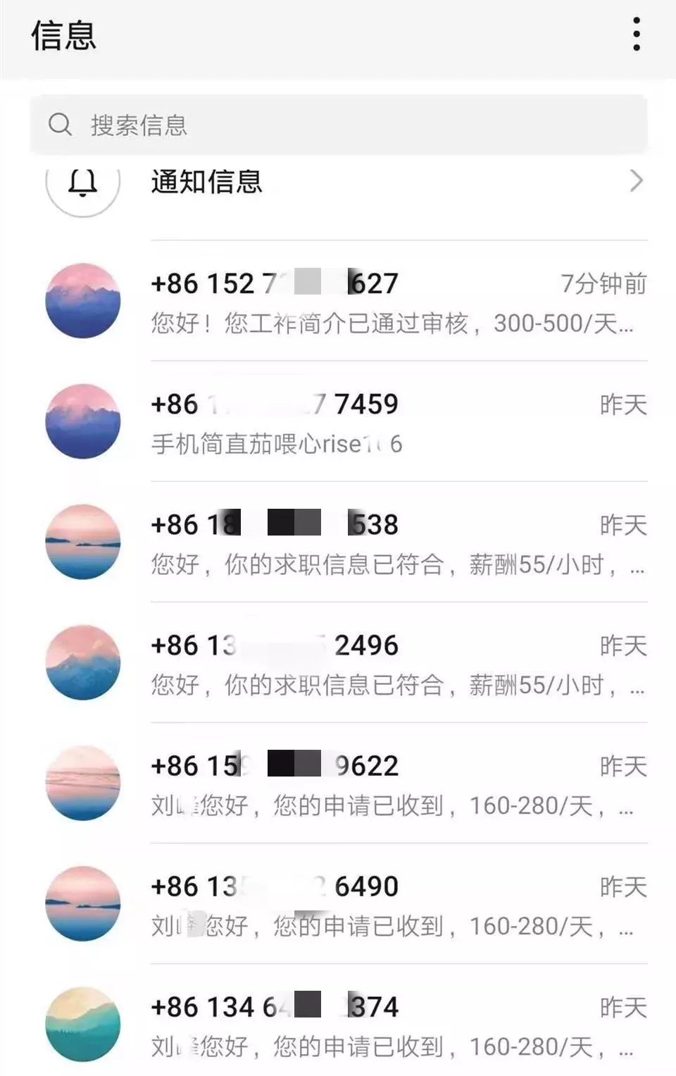 注冊(cè)用戶,投放簡(jiǎn)歷,一氣呵成。平臺(tái)也沒讓他失望,沒多久就接到了一個(gè)招聘網(wǎng)絡(luò)兼職的電話。