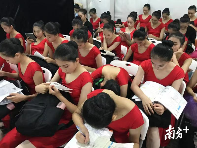 在晚會(huì)的另一個(gè)彩排候場(chǎng)點(diǎn),36名來自深圳高級(jí)中學(xué)舞蹈團(tuán)的參演學(xué)生在彩排和演出間隙仍然抓緊學(xué)習(xí)。深圳高級(jí)中學(xué)舞蹈團(tuán)老師高潔說,這是舞團(tuán)候場(chǎng)的常態(tài),“為了不耽誤學(xué)習(xí),經(jīng)常得抓緊間隙進(jìn)行學(xué)習(xí)?!?/p>