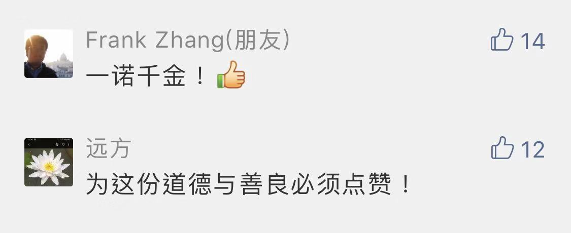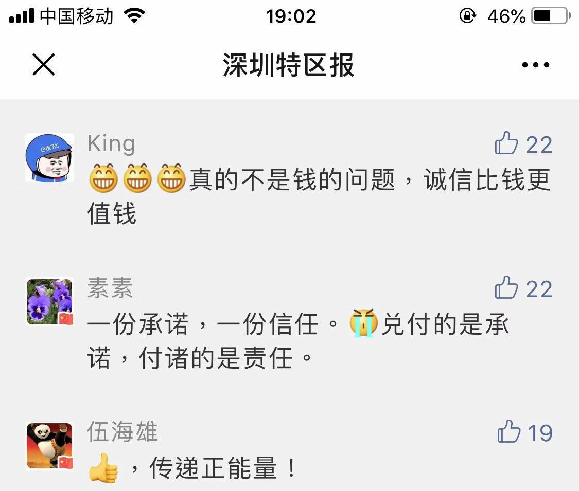 網(wǎng)友表示對(duì)雙方之間建立起來的誠(chéng)信與信任感動(dòng),紛紛點(diǎn)贊!