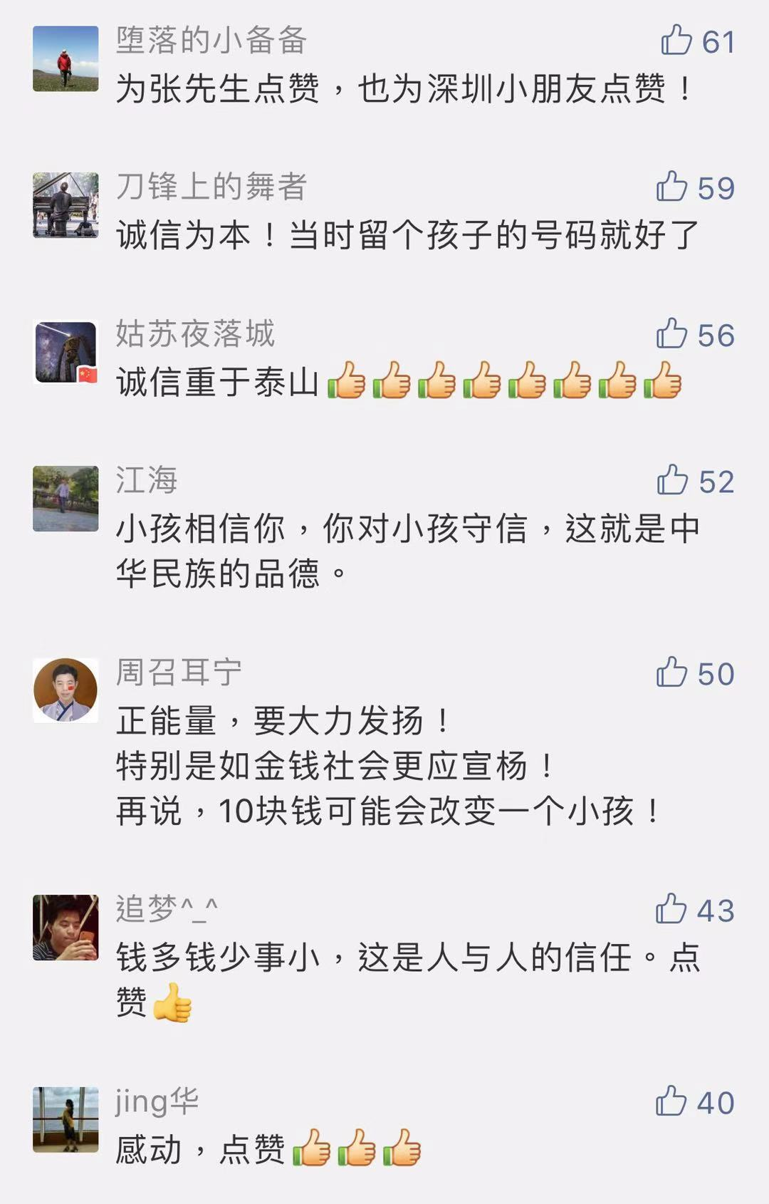 深圳特區(qū)報(bào)2019年10月4日訊 近日,一則尋人信息在微信朋友圈被廣泛轉(zhuǎn)發(fā)——來自青島的張先生在深圳看完國(guó)慶煙花表演后,回家路上遇到一個(gè)擺攤賣水的男孩,口渴難耐的張先生買了5瓶礦泉水,卻因?yàn)榫W(wǎng)絡(luò)不好無法完成手機(jī)支付,拍攝的保存的二維碼又因太模糊無法識(shí)別,最終張先生只能通過朋友圈“尋人”轉(zhuǎn)賬。4日,記者通過張先生得知,他已經(jīng)聯(lián)系上賣水男孩的父親,并且成功支付了10元的水錢。