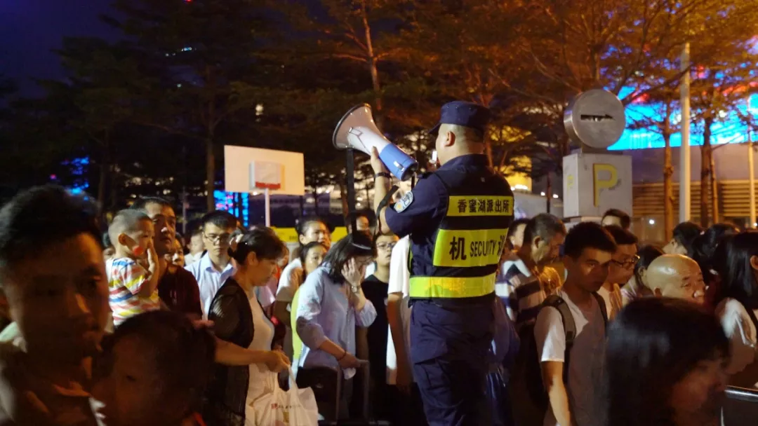 此外,福田公安分局根據(jù)市民中心和蓮花山頂廣場(chǎng)的每日人流負(fù)荷情況實(shí)時(shí)調(diào)整,及時(shí)協(xié)調(diào)城管調(diào)控?zé)艄庑悴コ鰰r(shí)間并加演,避免人流停滯,緩解疏導(dǎo)壓力。值得一提的是,為了方便市民夜間行走,觀賞區(qū)特地“開辟”了幾條新的應(yīng)急道路,并在所有“黑暗死角”都加裝了應(yīng)急燈。福田公安分局指揮處處長(zhǎng)張保軍表示:“在安保警力多次實(shí)地巡查后,及時(shí)發(fā)現(xiàn)問題并整改、疏通光線不足及堵塞人群的道路,使市民們?cè)谟^看完燈光秀后能夠更加安全、快捷地離開?!背艘酝猓谌肆髅芗臒艄庑悻F(xiàn)場(chǎng),孩童走失、物品遺失的情況也有發(fā)生,安保人員不斷地通過廣播尋人、尋物,進(jìn)行實(shí)名登記,盡心盡力地為市民、游客解決切身難題。