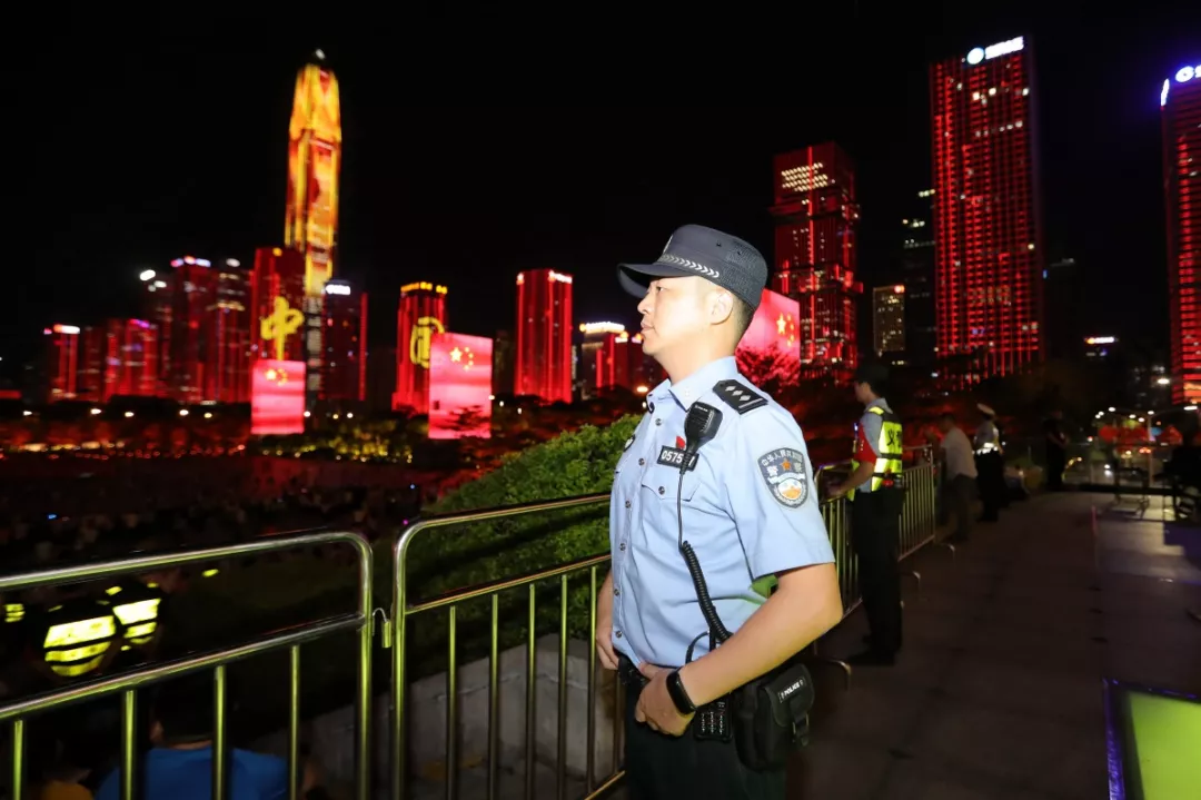 福田公安分局用堅守向祖國獻禮,此次燈光秀安保警力全力以赴、連續(xù)奮戰(zhàn),擔當使命、攻堅克難,強化重點部位管控,嚴密落實安全防范措施,確保了各場燈光秀表演活動安全進行,在絢爛燈光下,公安“藍”成最美風景線,默默守護大眾。