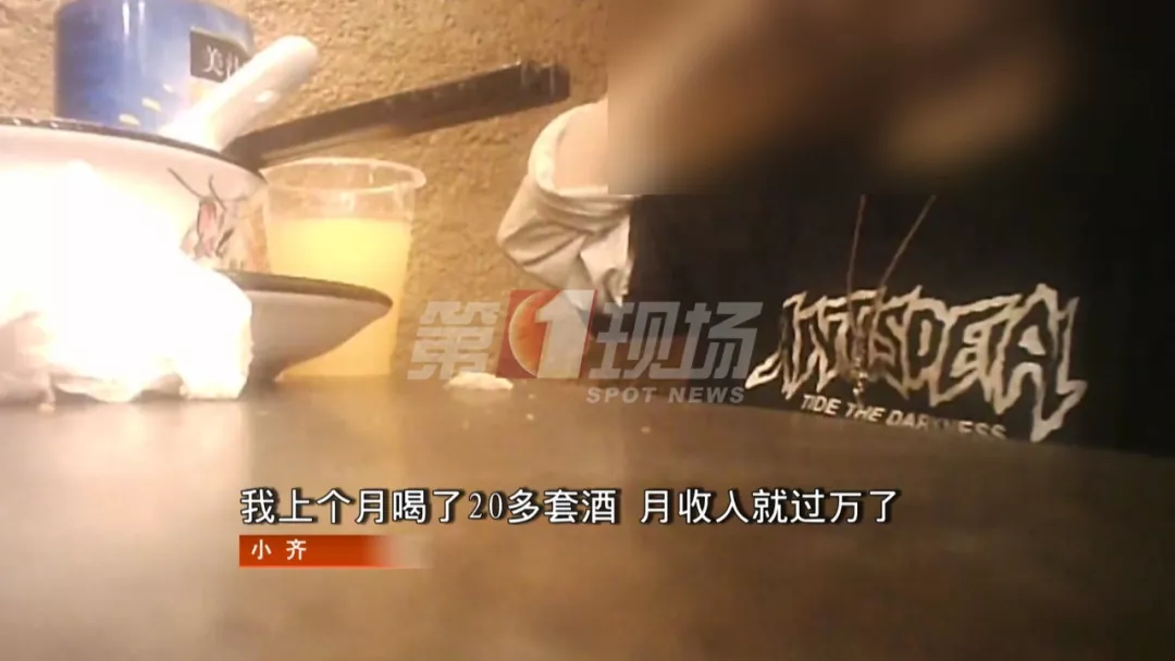 接單后,可以叫其他女孩過來陪酒,業(yè)內俗稱“女站”,“女站”喝一套酒,可以賺38塊8,小齊就是其中一位,這樣她可以做到月入上萬。