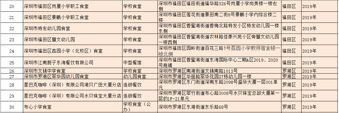 深圳新增156家A級餐飲單位,另有一幼兒園食堂被降級