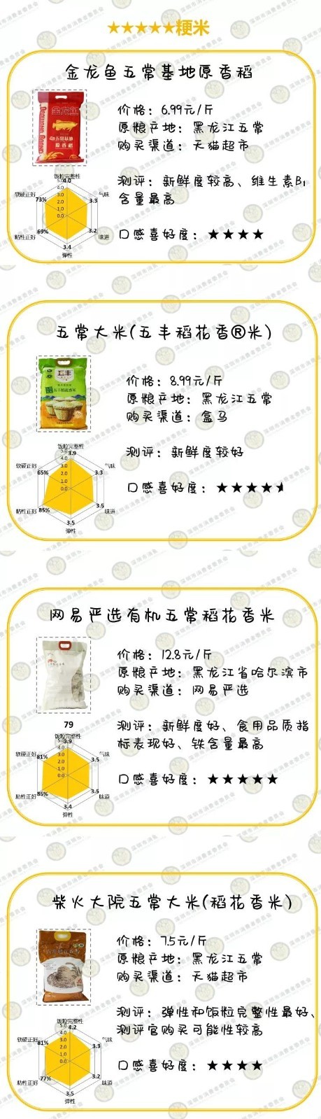 大米比較試驗測評產(chǎn)品信息及評級表↓