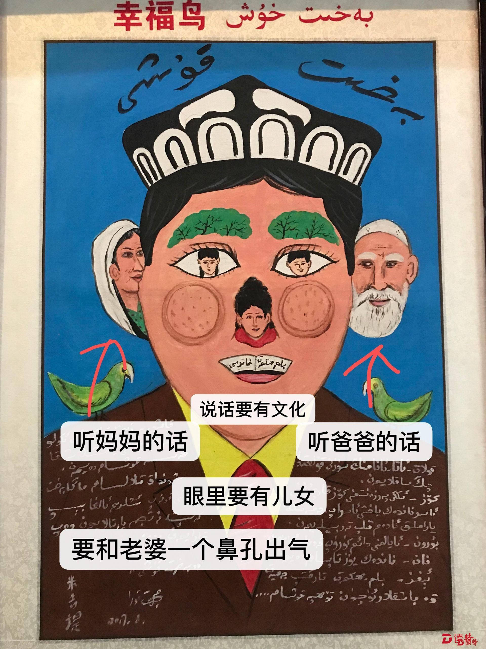 牧民的帳篷、肥壯的牛羊、路旁的榆錢樹……在刀郎農(nóng)名畫展廳里記者看到,平日生活中隨處可見的事物一一被刀郎人在勞動和生活中用敏銳的目光捕捉,并將其躍然紙上,幽默中透視矛盾,夸張中充滿情緒宣泄,一幅幅作品活靈活現(xiàn)、色彩斑斕,讓人眼花繚亂,構(gòu)成了“刀郎農(nóng)民畫”畫家在處理反映現(xiàn)實(shí)主義和浪漫主義別具一格的藝術(shù)特色。
