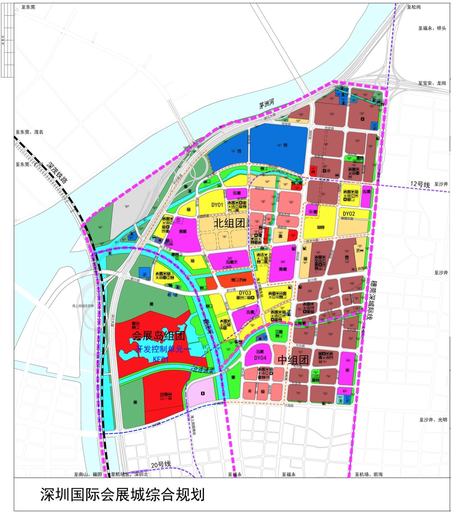 “深圳國際會(huì)展城”范圍北抵茅洲河、東至松福大道、南臨福永河、西側(cè)主要以廣深沿江高速公路為界,并包括規(guī)劃寶安綜合港區(qū),范圍共計(jì)22.57平方公里,規(guī)劃區(qū)劃分為三個(gè)片區(qū):國際會(huì)展中心片區(qū)、海上田園片區(qū)和寶安綜合港區(qū)。