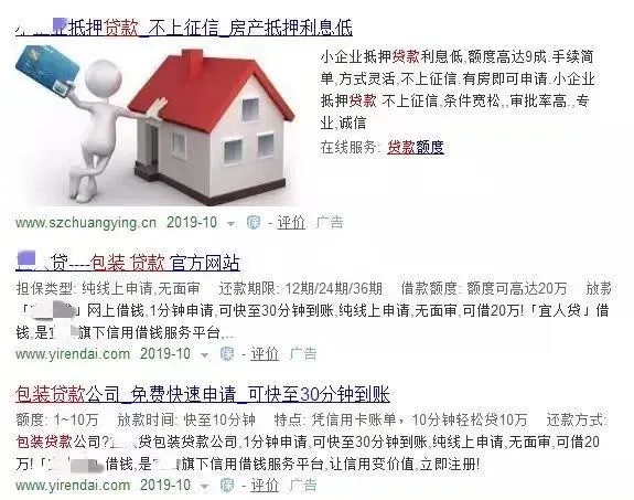 (某搜索引擎上存在大量包裝貸款廣告)