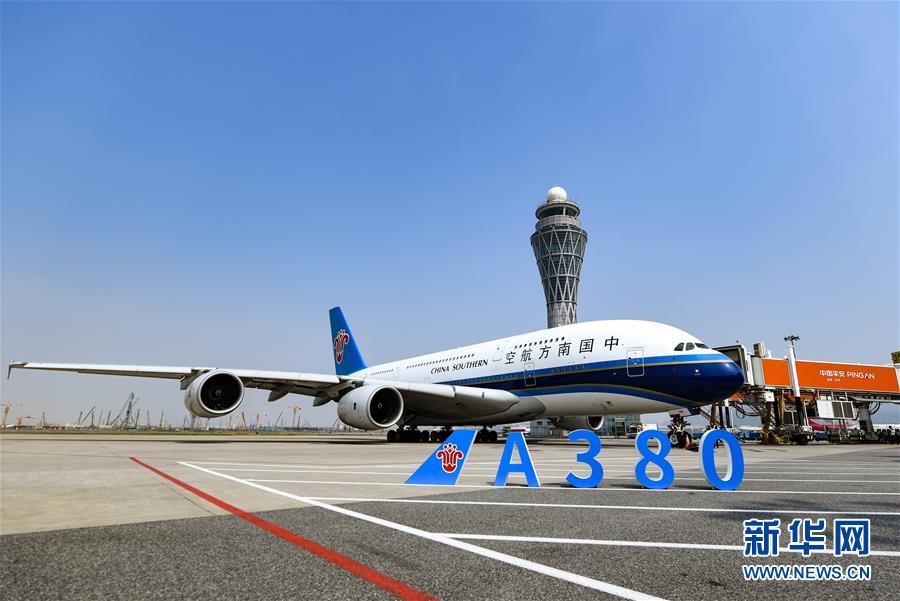 10月27日,南方航空空中客車A380客機(jī)??吭谏钲跈C(jī)場(chǎng)。當(dāng)日下午,由全球最大寬體客機(jī)——空中客車A380執(zhí)飛的南航CZ3153次航班由深圳起飛前往北京,標(biāo)志著這款“空中巨無(wú)霸”機(jī)型重返深圳機(jī)場(chǎng)。南航曾在2014年5月開(kāi)始啟用A380執(zhí)飛京深航線,后因動(dòng)態(tài)運(yùn)力調(diào)配停飛。新華社記者毛思倩攝