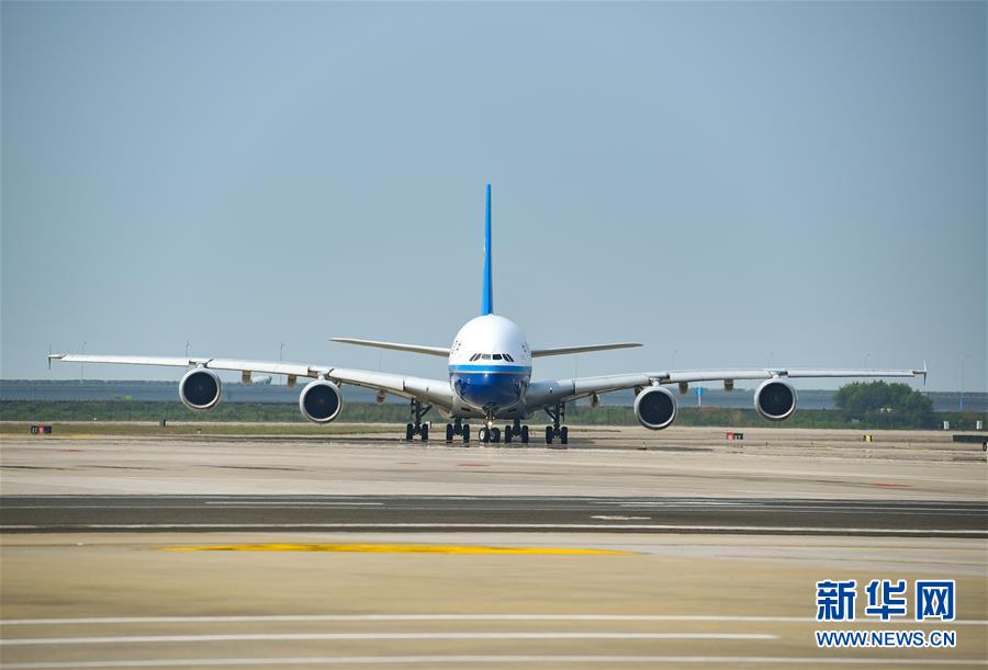 10月27日,南方航空空中客車A380客機(jī)抵達(dá)深圳機(jī)場。當(dāng)日下午,由全球最大寬體客機(jī)——空中客車A380執(zhí)飛的南航CZ3153次航班由深圳起飛前往北京,標(biāo)志著這款“空中巨無霸”機(jī)型重返深圳機(jī)場。南航曾在2014年5月開始啟用A380執(zhí)飛京深航線,后因動態(tài)運力調(diào)配停飛。新華社記者毛思倩攝