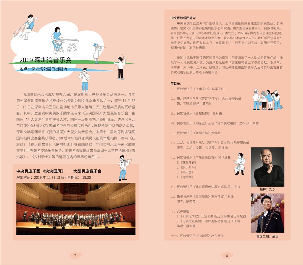 據(jù)介紹,今年第七屆深圳灣音樂(lè)會(huì)將繼續(xù)作為深圳公園文化季重頭戲之一,將于11月13日-15日在深圳灣公園日出劇場(chǎng)給市民帶來(lái)連續(xù)三天三晚超高品質(zhì)的視聽(tīng)盛宴。今年邀請(qǐng)到海內(nèi)外規(guī)模最大、藝術(shù)最完備的綜合性國(guó)家級(jí)民族音樂(lè)表演團(tuán)體中央民族樂(lè)團(tuán)率先帶來(lái)《泱泱國(guó)風(fēng)》大型民族音樂(lè)會(huì),還有深圳交響樂(lè)團(tuán)帶來(lái)《我的祖國(guó)》大型交響音樂(lè)會(huì),廣州交響樂(lè)團(tuán)帶來(lái)《巔峰交響》世界著名交響樂(lè)音樂(lè)會(huì)。