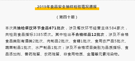2019年食品安全抽樣檢驗情況通報