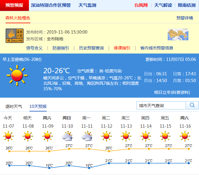見圳客戶端·深圳新聞網(wǎng)2019年11月7日訊 空氣非常干燥,沿海及高地陣風(fēng)7級左右,氣溫20-26℃。未來幾天干燥加劇,請注意用火安全,戶外運(yùn)動(dòng)需及時(shí)補(bǔ)充水分。