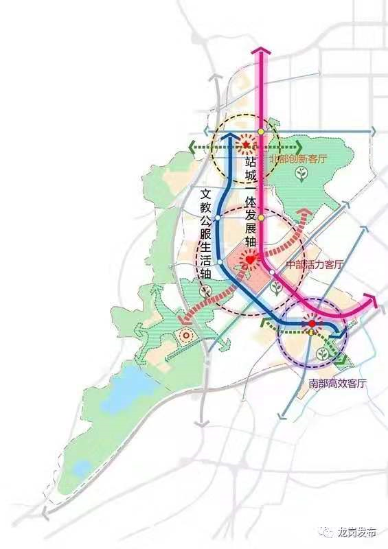 2019年7月,備受矚目的大運(yùn)新城城市設(shè)計(jì)成果經(jīng)深圳市規(guī)劃和自然資源局審議正式出爐。未來的大運(yùn)新城將是一座生態(tài)文明健康、學(xué)習(xí)文化濃厚、多維開放連接、創(chuàng)新活力迸發(fā)的高水平城市新客廳,形成“一主兩副、三心兩軸”的總體城市框架。其中“三心”為“一主兩副”三個城市客廳,即主客廳“中部活力客廳”,副客廳“北部創(chuàng)新客廳”和“南部高效客廳”。“兩軸”為黃閣路“站城一體發(fā)展軸”和龍飛大道“文教公服生活軸”。