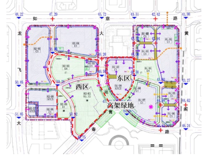 設(shè)計(jì)將考慮公配及綠地地塊東區(qū)(含01-09、01-10地塊)與商業(yè)為鄰,以“文化”為前提,通過功能模塊相互并聯(lián),體現(xiàn)公共文化性。公配及綠地地塊西區(qū)(含02-01、02-02、02-03、02-09地塊)與公寓、大運(yùn)場館為鄰,以“休閑”為前提,結(jié)合公共空間的營造,打造低密度綠色景觀開放空間,體現(xiàn)休閑生活性。高架綠地為連接?xùn)|西區(qū)、商業(yè)、超塔及大運(yùn)體育場館的重要慢行樞紐,需注重流線的合理性及公共開放空間與建筑的有機(jī)結(jié)合。
