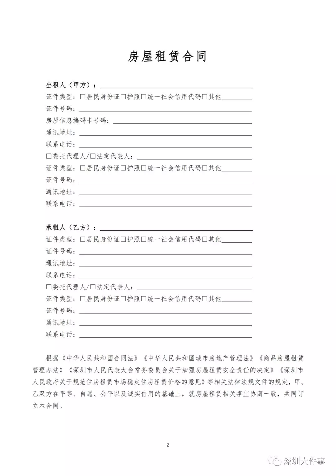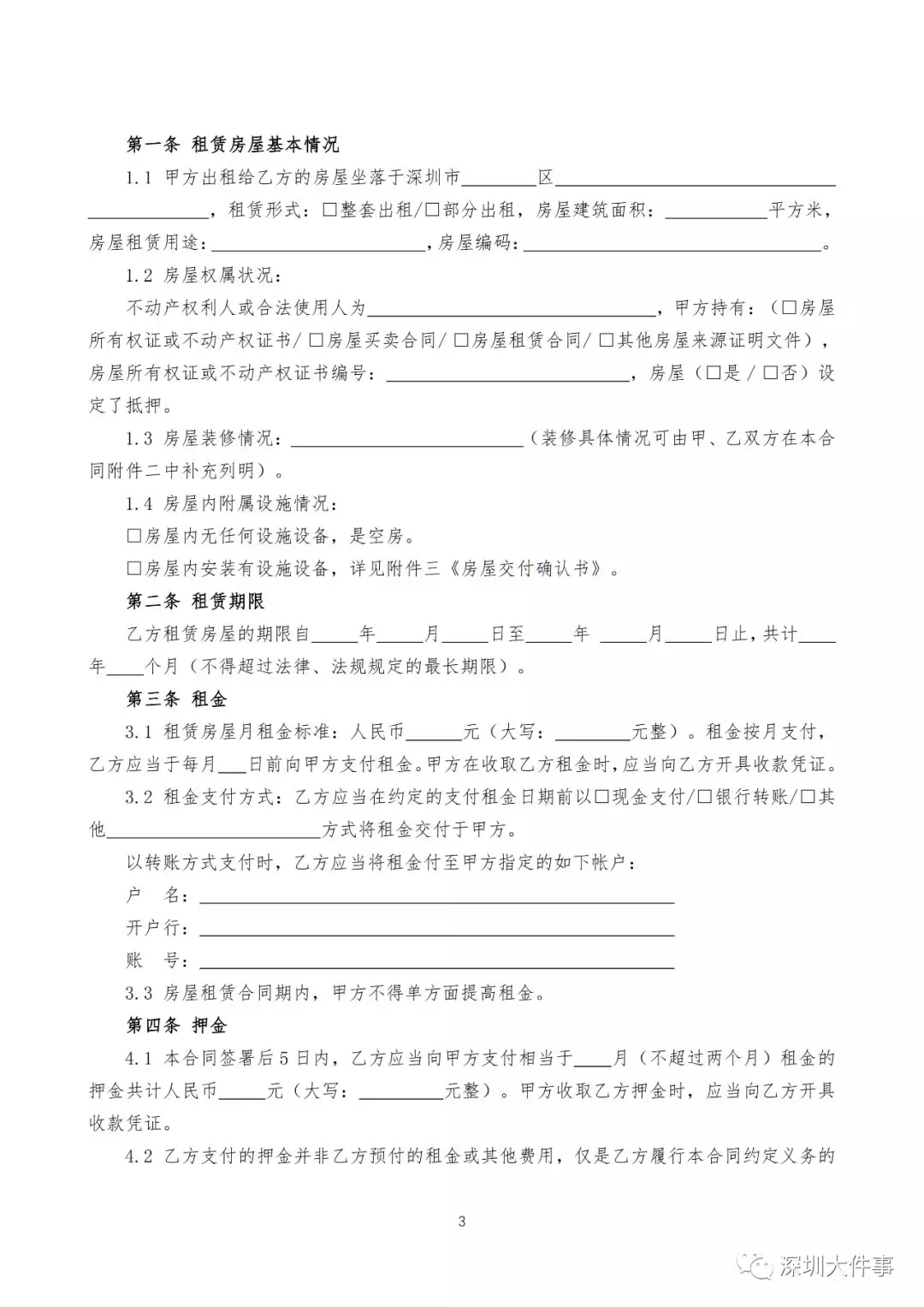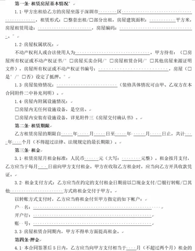 (深圳市房屋租賃住宅合同模板)