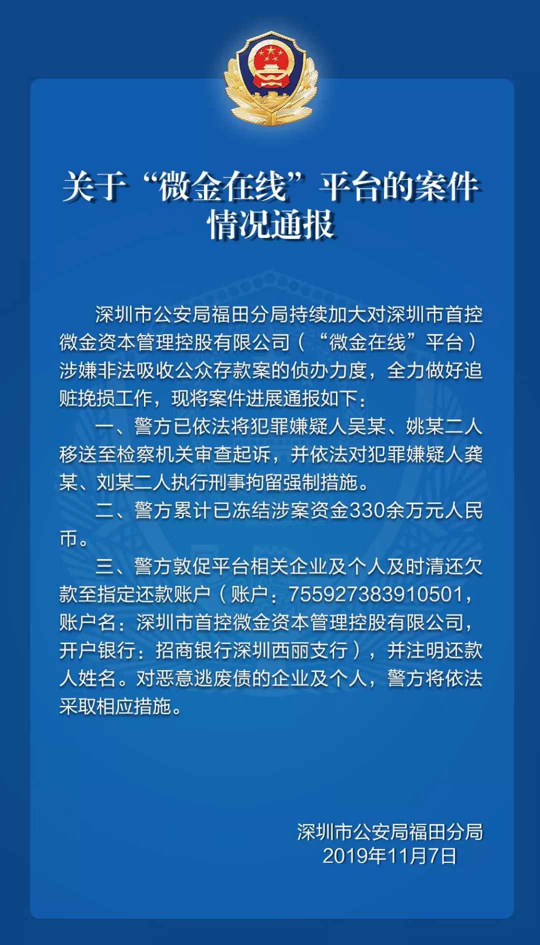 關(guān)于“微金在線”平臺的案件情況通報