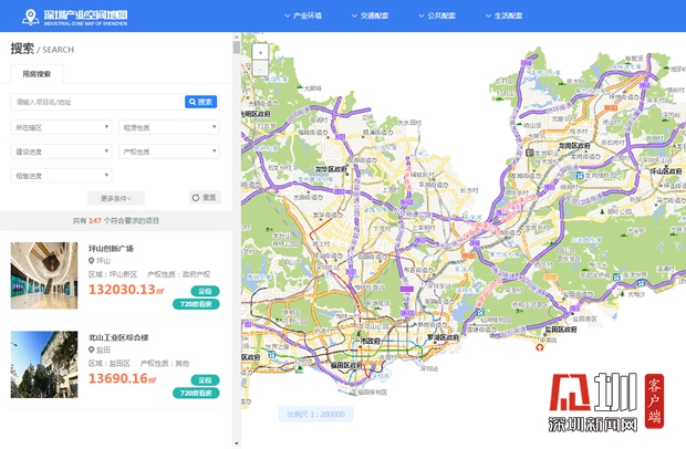 深圳產(chǎn)業(yè)空間地圖相當直觀實用,哪個區(qū)有合適的產(chǎn)業(yè)用房房源一目了然。
