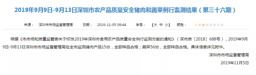 豬肉和蔬菜例行監(jiān)測結(jié)果