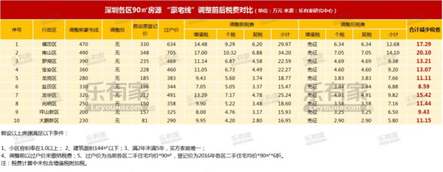 90㎡房子在深圳各區(qū)豪宅稅調(diào)整后減少稅費(fèi)情況,來(lái)自樂(lè)有家研究中心