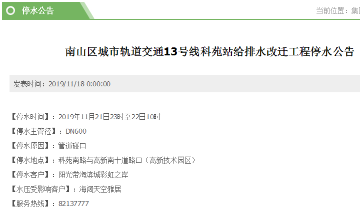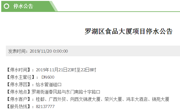 停水時(shí)間:11月21日8時(shí)30分至18時(shí)