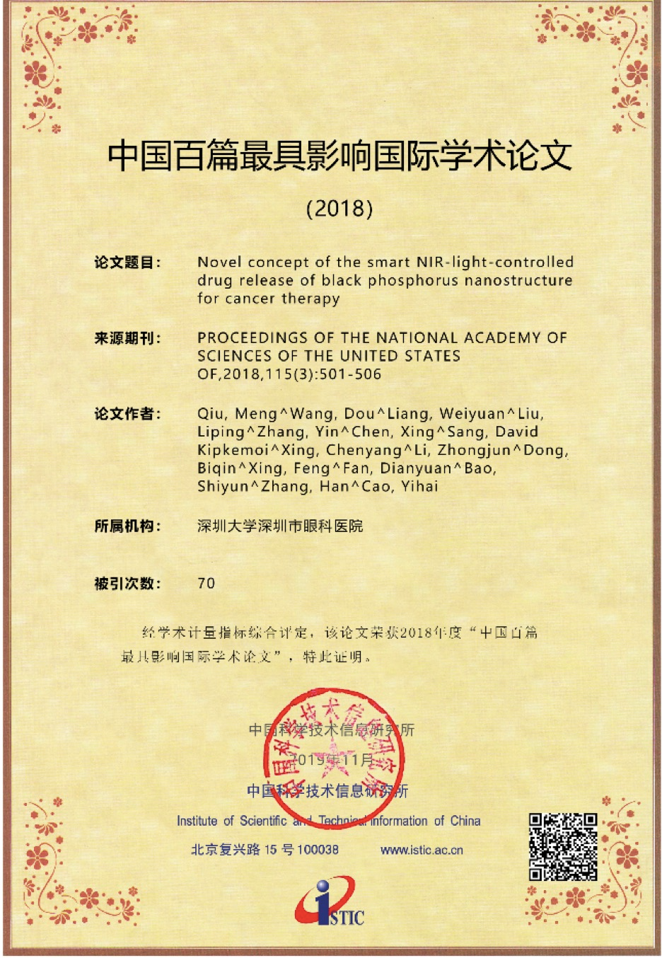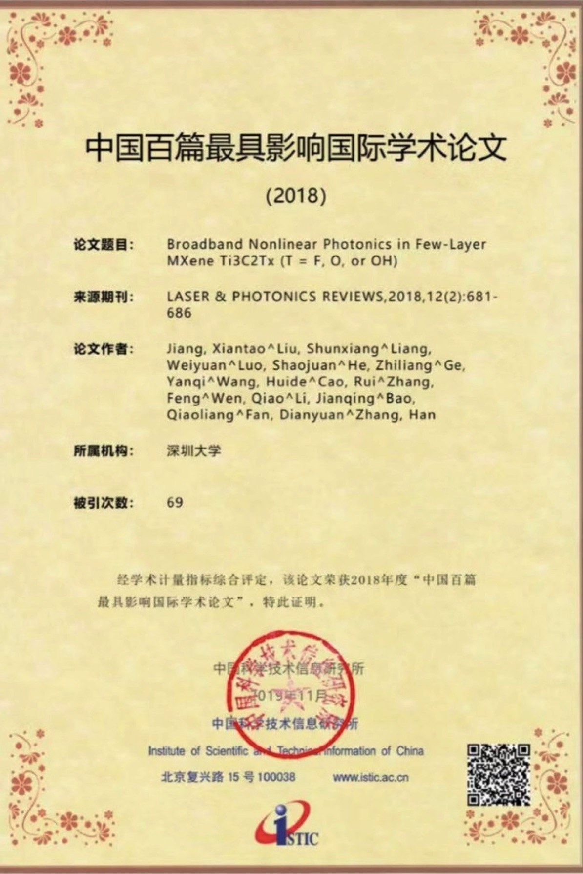 原標題:2018年中國百篇最具影響國際學術論文公布,深大張晗課題組2篇論文入選